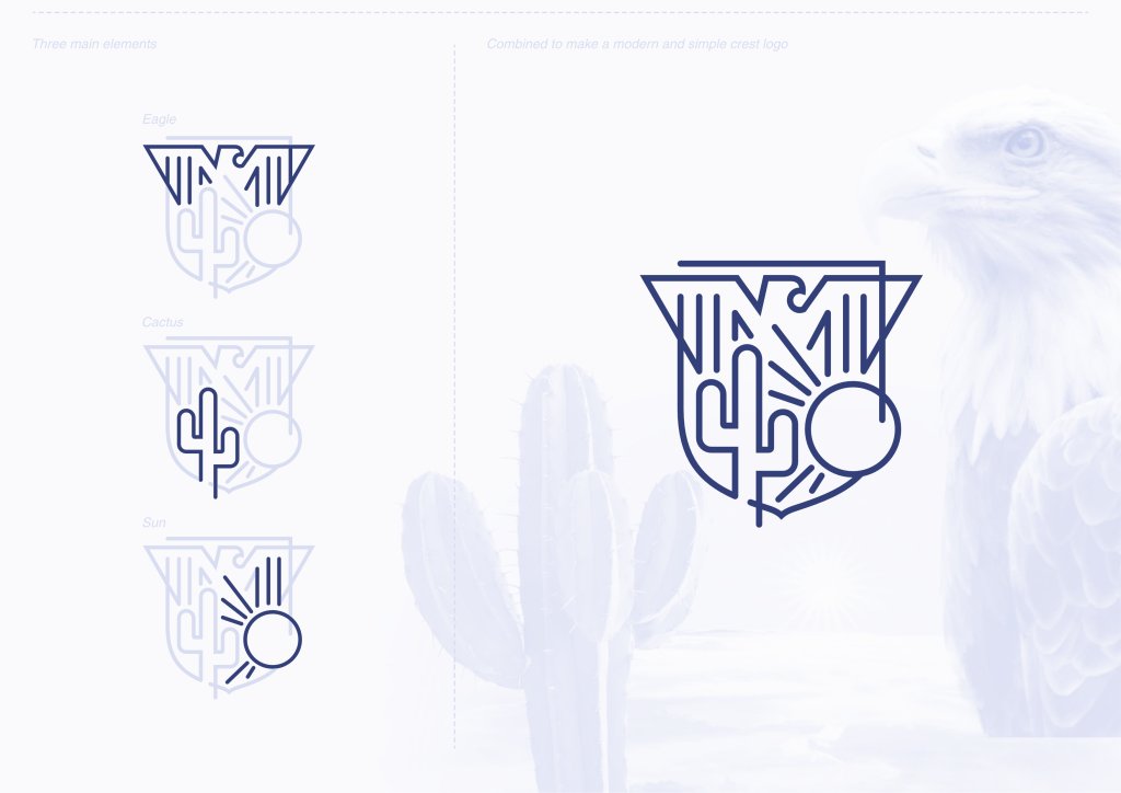 Designing a modern and minimalistic crest logo posed a captivating challenge, requiring a harmonious blend of three distinctive elements: an eagle, a cactus, and a sun. The goal was to create a visual narrative that seamlessly integrated these diverse components while maintaining a sleek and contemporary aesthetic. The eagle, symbolizing strength and freedom, gracefully perched atop the crest, while a stylized cactus and sun added a touch of southwestern charm. The simplicity of the design allowed for versatility, ensuring that the crest could be effectively utilized across various applications while remaining a striking symbol of identity and purpose.